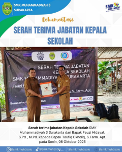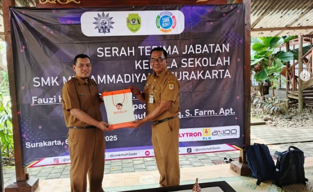 Serah terima jabatan Kepala Sekolah dari Bapak Fauzi Hidayat, S.Pd., M.Pd. kepada Bapak Taufiq Ckholiq, S.Farm., Apt.